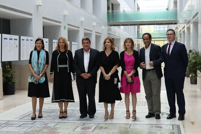 De izquierda a derecha: Inmaculada Pérez (directora del ILC-CSIC); Elea Giménez (directora del CCHS-CSIC); Jose Luis Escrivá (ministro de Inclusión, Seguridad Social y Migraciones del Gobierno de España); Hana Jalloul (secretaria de Política Internacional y Cooperación al Desarrollo en la CEF PSOE); Delfina Serrano (investigadora del ILC-CSIC); Mohammed Dahiri (profesor de Estudios Árabes e Islámicos de la UCM); Laurent Chaminade (World Scientific Europe Ltd.); en el Centro de Ciencias Humanas y Sociales del CSIC | Fotografía: CCHS, 14/09/2022