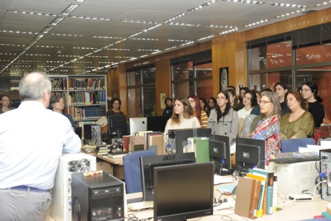 Por su parte, los investigadores del “Diccionario Griego-Español” (DGE) recibieron a los interesados en la sala en la que se desarrolla la actividad del proyecto y que alberga el corpus bibliográfico necesario para la elaboración del que aspira a convertirse en el diccionario de griego antiguo más completo y actualizado hasta el momento.