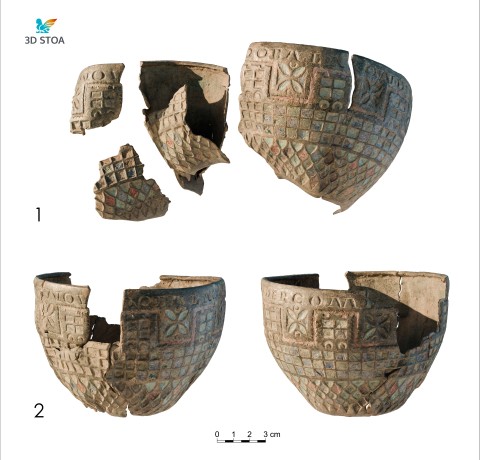 -	Figure 5.jpg: Representación en 3D de la copa de Berlanga. En la parte superior, los fragmentos en su estado actual. En la inferior, una reconstrucción virtual / Autoría: 3D STOA – Arqueología y Patrimonio