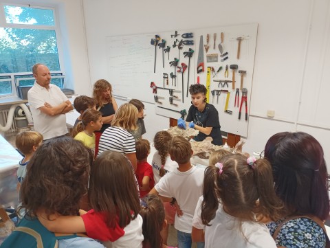 Más de 100 personas, entre escolares, profesores, familias, jóvenes y adultos, pudieron disfrutar de la actividad presentada bajo el título "Poner cara a dinosaurios, osos y otras criaturas. Un viaje al pasado desde la investigación y producción en Bellas Artes, Joserra Marcaida, historiador de la ciencia y el arte del Instituto de Historia del CSIC, junto con un equipo multidisciplinario de investigadoras de bellas artes de la UCM, guiaron a los participantes por un viaje fascinante que fusionó métodos de investigación científica y producción artística, desplegados en tres espacios singulares de la Facultad de Bellas Artes de la UCM.